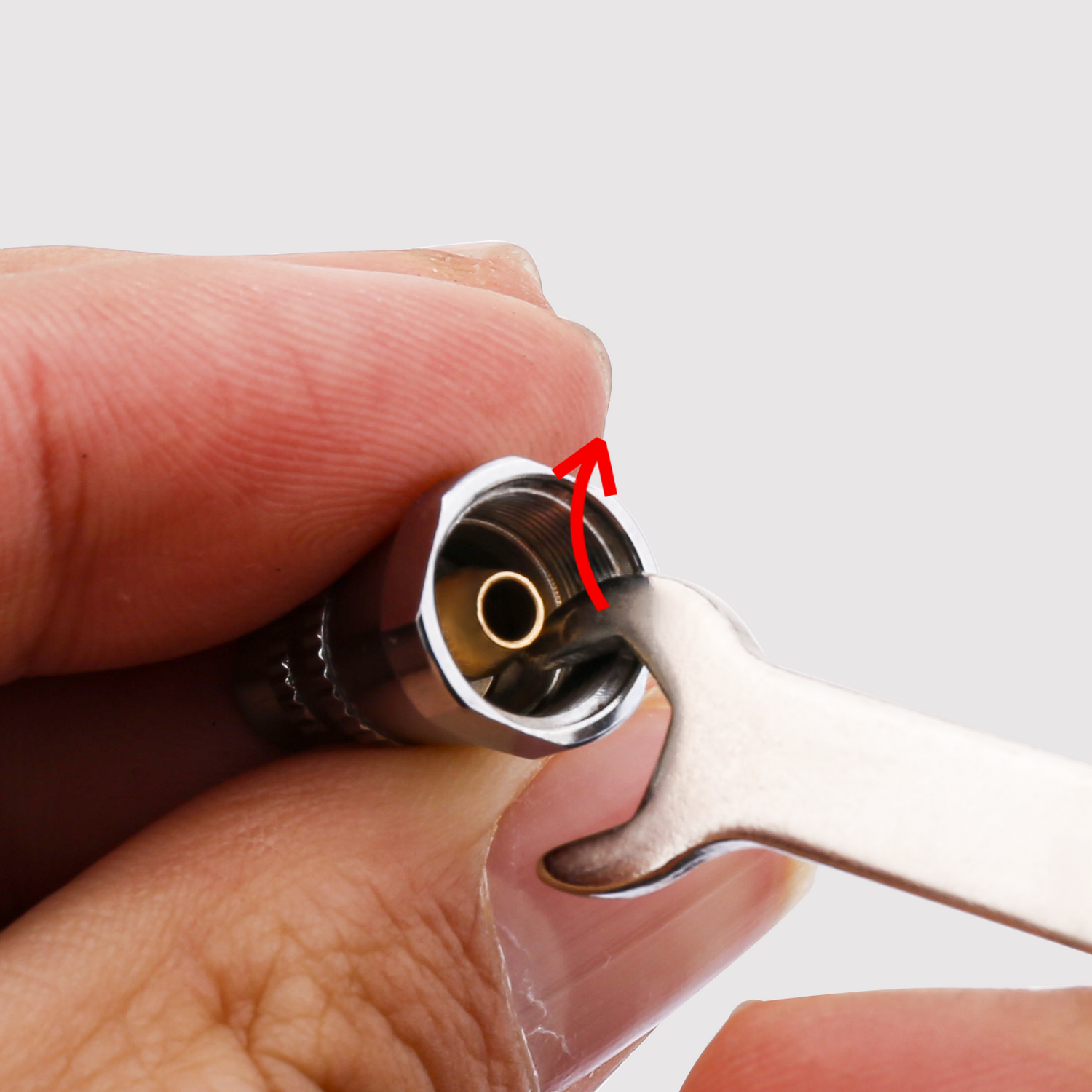 Utilize the included spanner or a suitable tool to gently apply lateral pressure to the nozzle multiple times. This action will gradually loosen the nozzle, making it easier to remove.