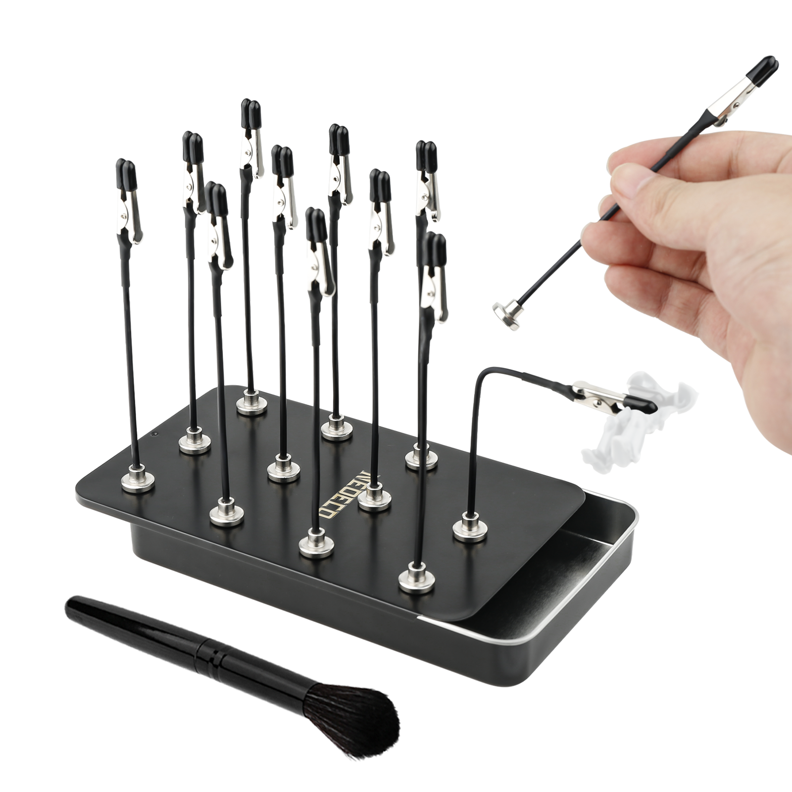 - 【Strong Magnet Stick】 The alligator clip stick comes with a strong magnet that can stand on a metal base stably, without shaking. You can conveniently place the sticks on the metal base.