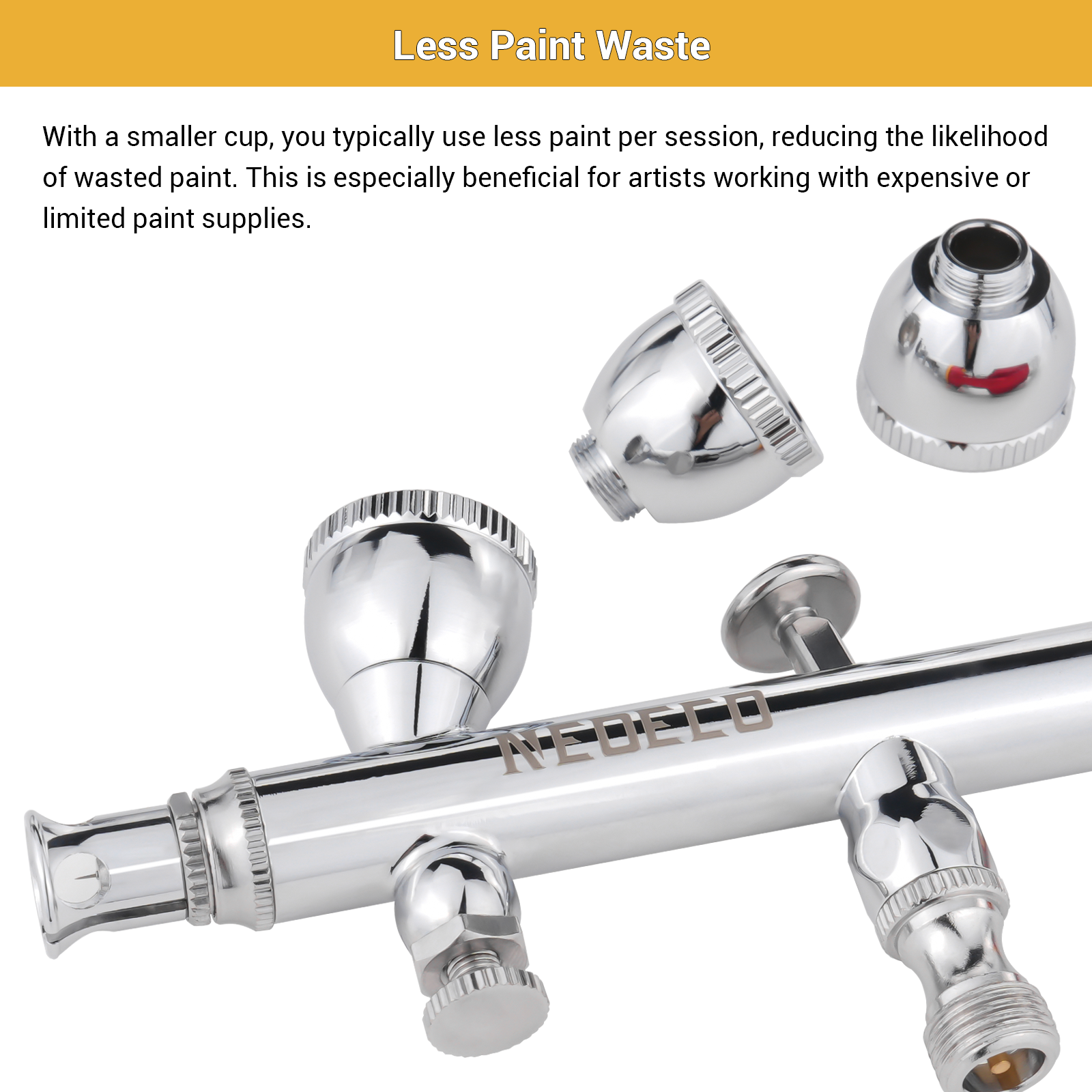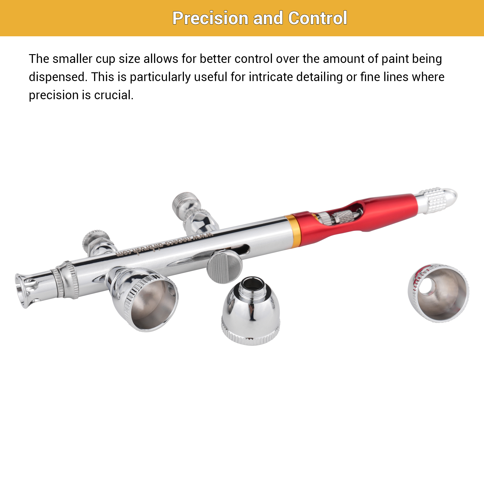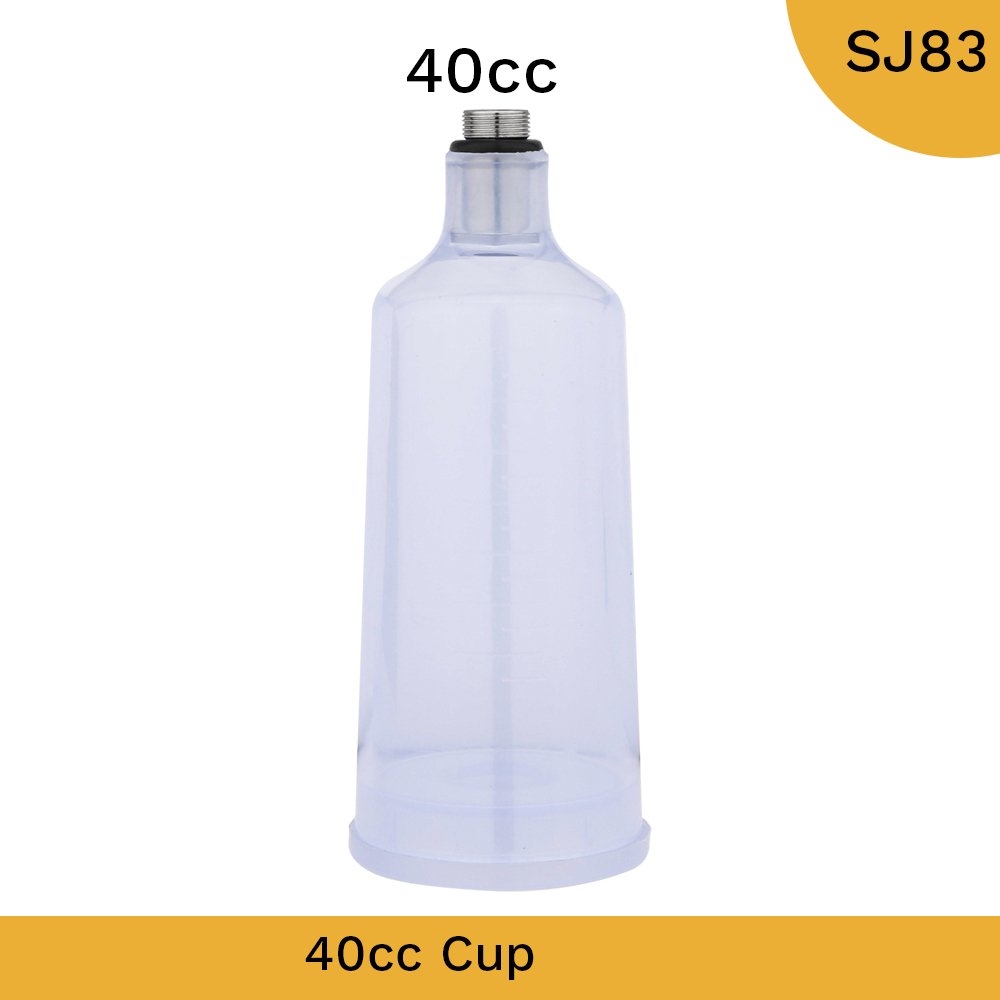 Three detachable cups available with capacities of 2cc, 9cc, 20cc, and 40cc.