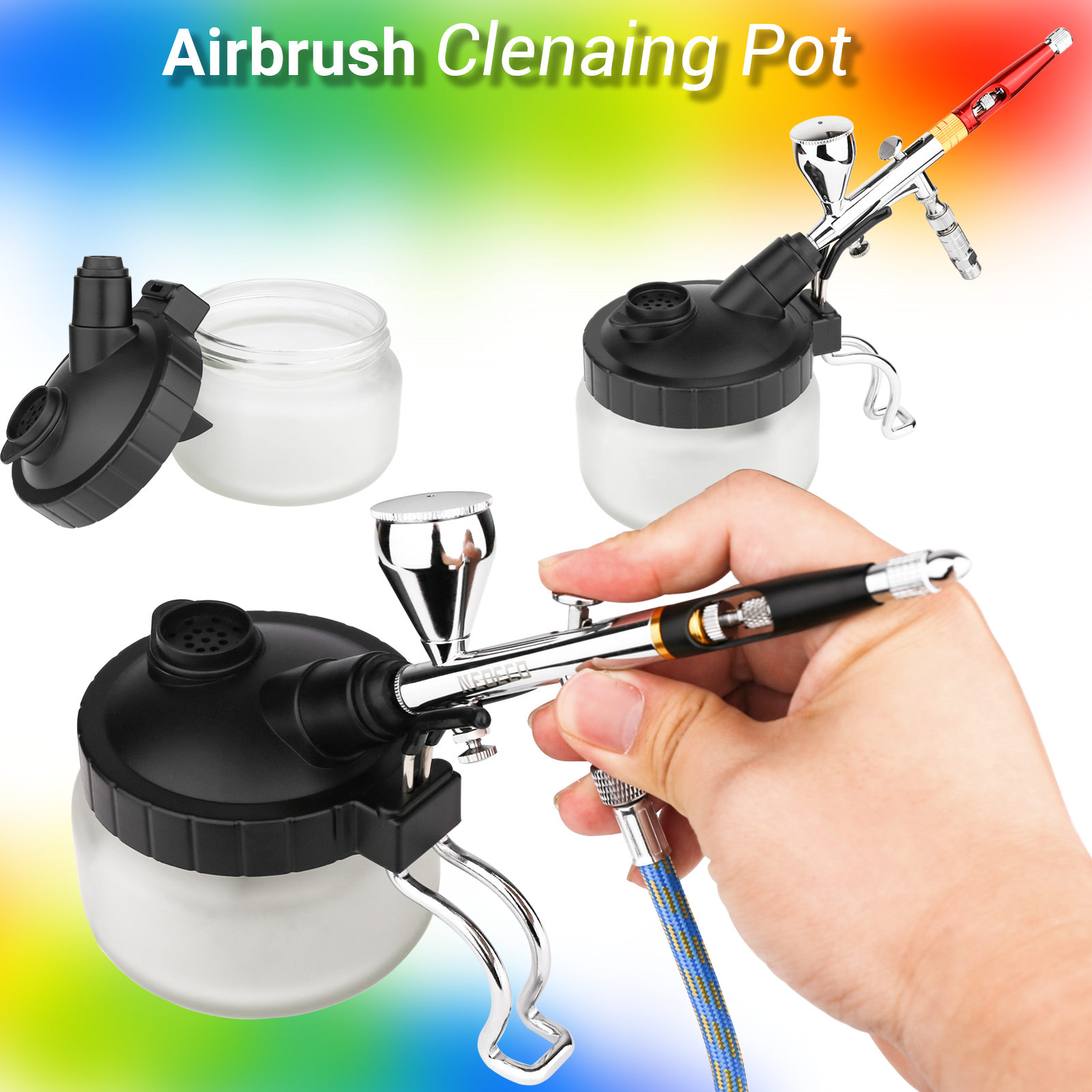 This incredibly versatile airbrush cleaning pot is specifically designed for thorough airbrush cleaning. It proves particularly advantageous for those equipped with MAC valves and siphon bottles, as it skillfully avoids any interference with these components. When used in conjunction with airbrush wipes, it offers a significantly enhanced ease in efficiently cleaning your airbrush.