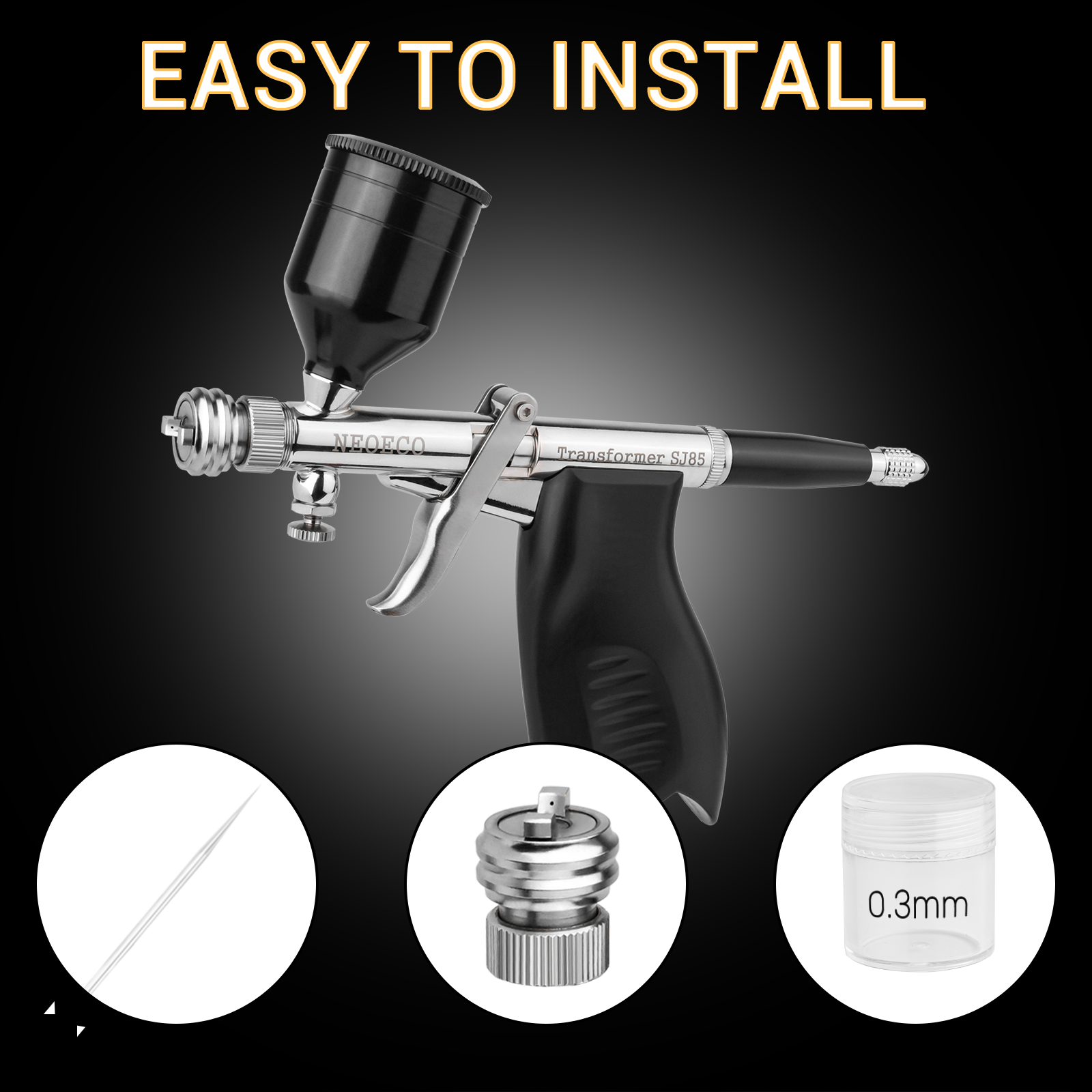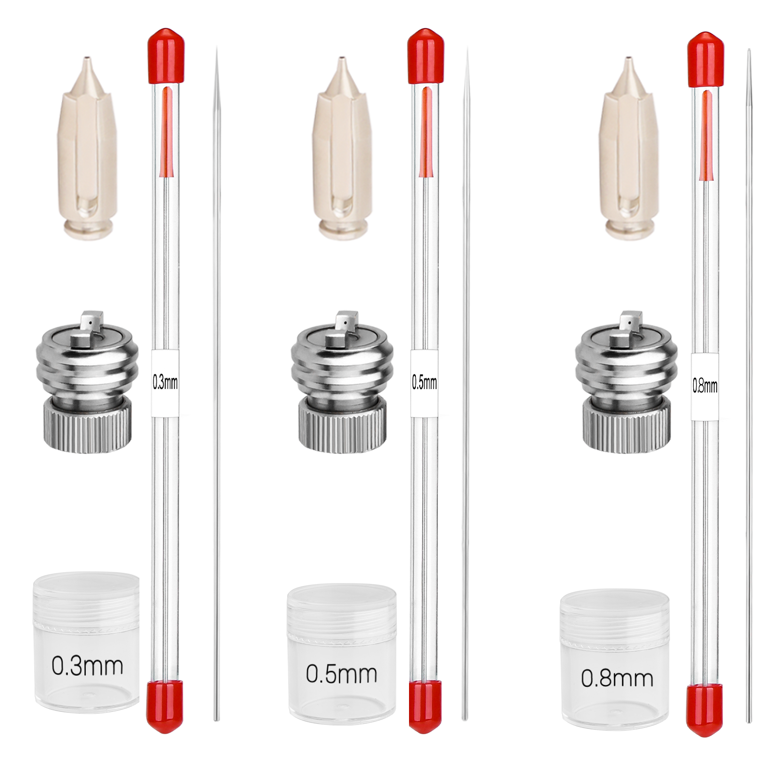 Relacement 0.3mm 0.5mm 0.8mm nozzle and needle kit for SJ85 Transformer airbrush.